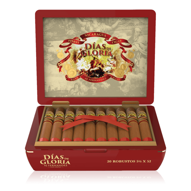 With Dias de Gloria, AJ Fernandez sets out to recapture the essence of pre-Castro Cuban cigars — when craftsmanship and flavor reigned supreme. This Nicaraguan puro is handcrafted using tobaccos from four of AJ’s oldest farms in Estelí, with select leaves aged up to seven years for exceptional smoothness and balance.
